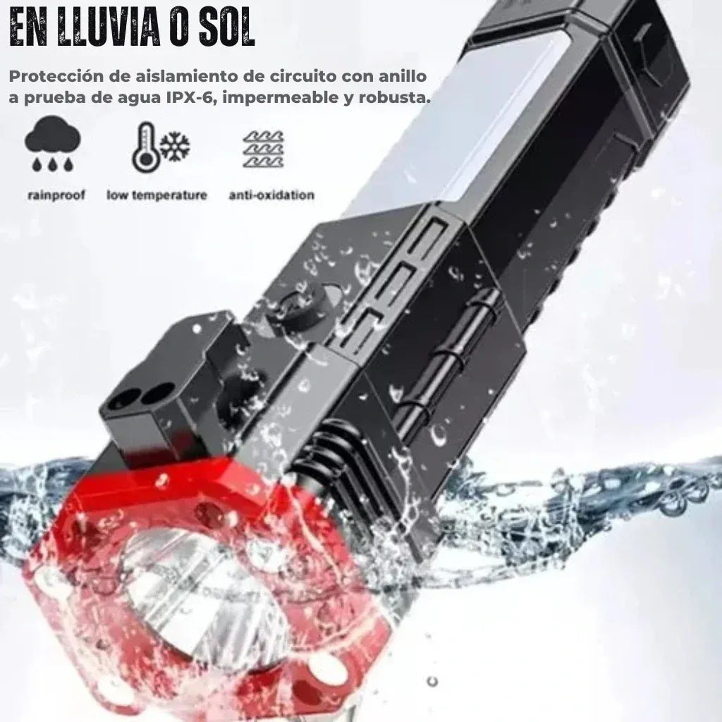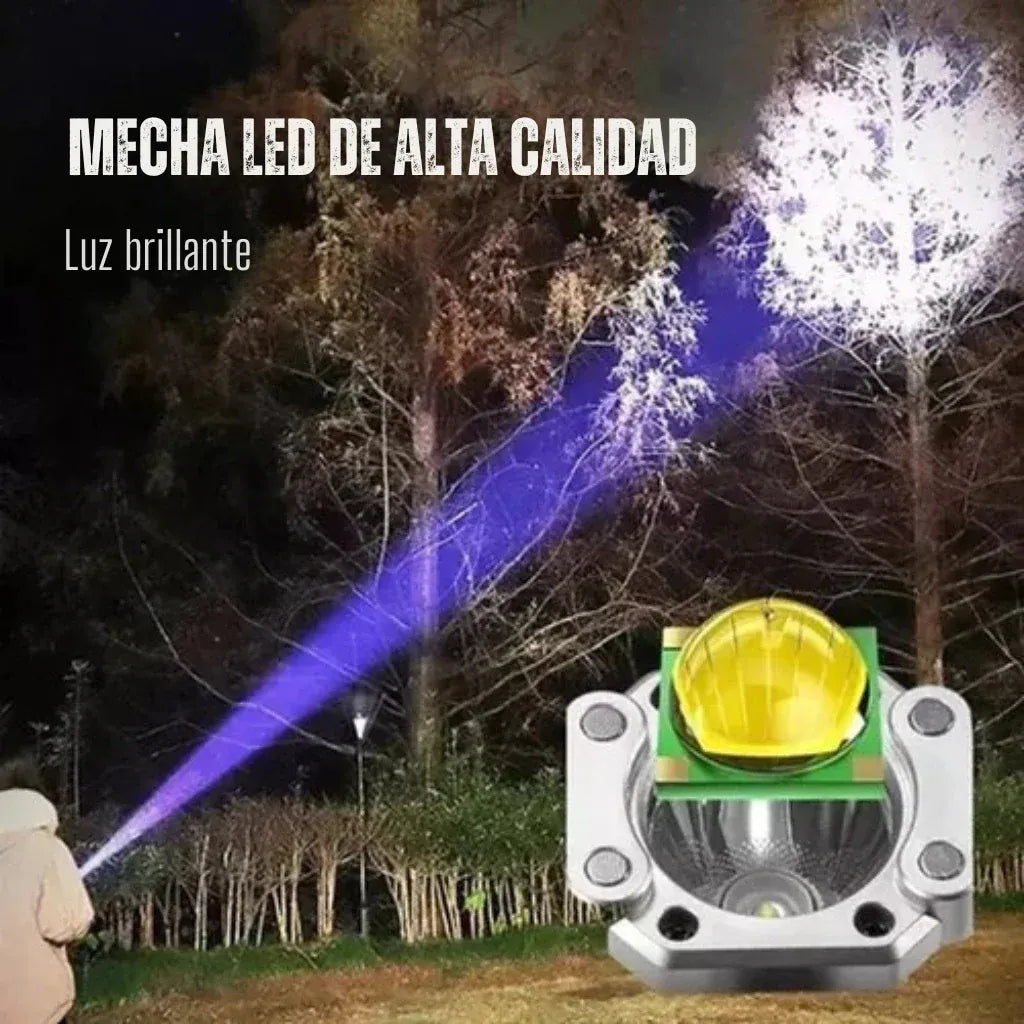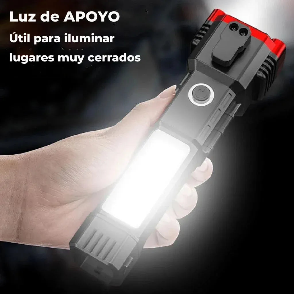 Luz Principal Potente10 veces más brillante que las linternas comunes. Ilumina hasta 4,500 metros (2.8 millas).