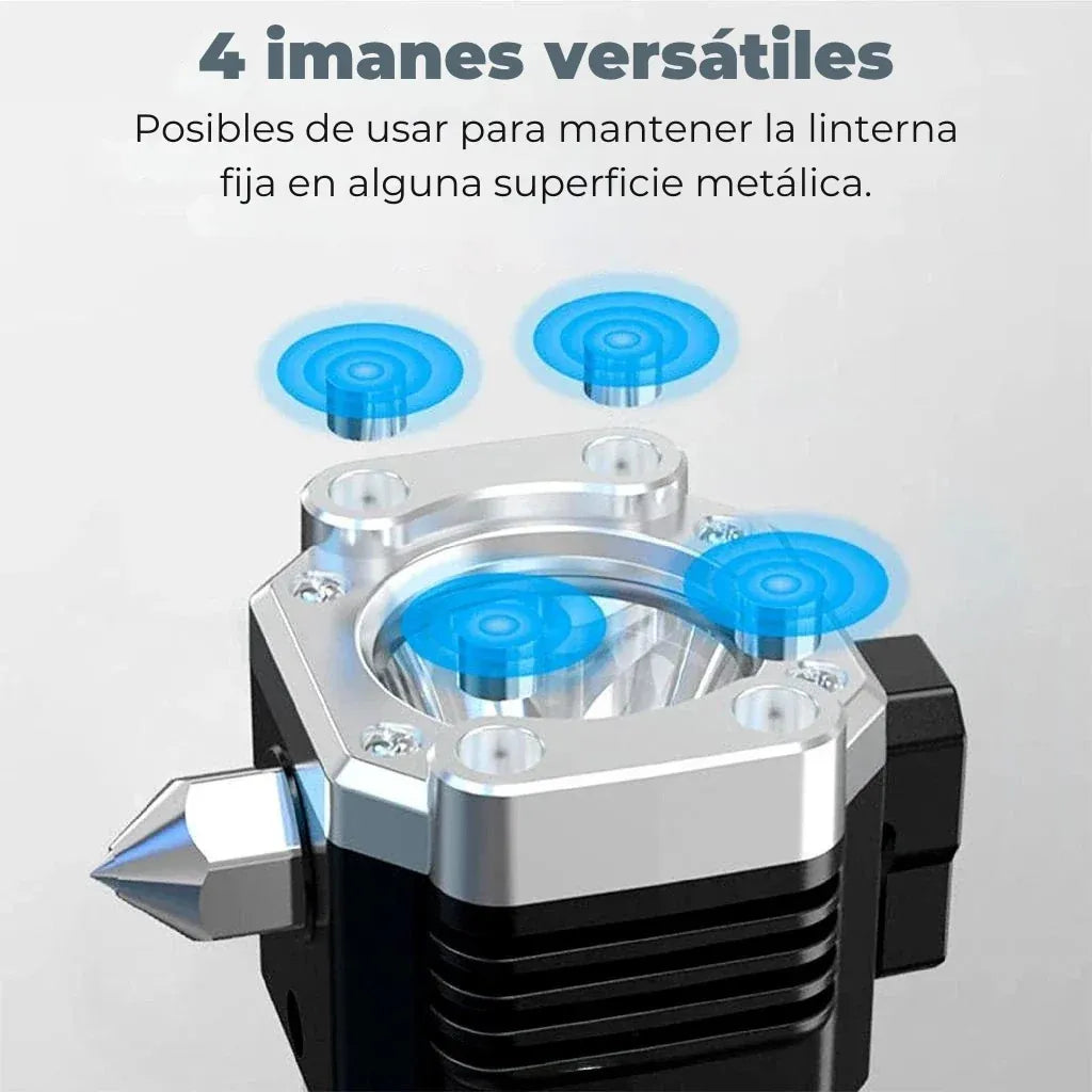 Tope Magnético: Fija la linterna en tu auto para cambiar un neumático de noche en la carretera.